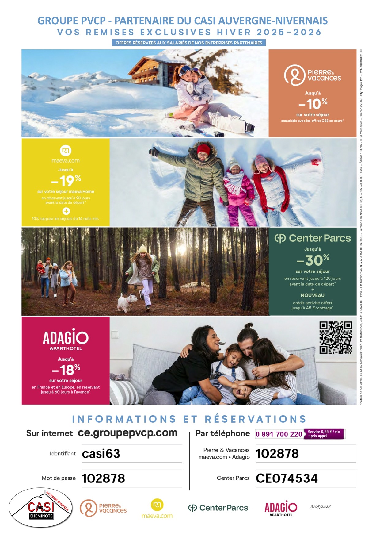 Date de réservation pour l’hiver 2025/2026 : – à partir du mercredi 1er octobre (cheminots CSE contributeurs) – à partir du mercredi 8 octobre (cheminots CSE non contributeurs) En savoir + sur les gîtes & les tarifs